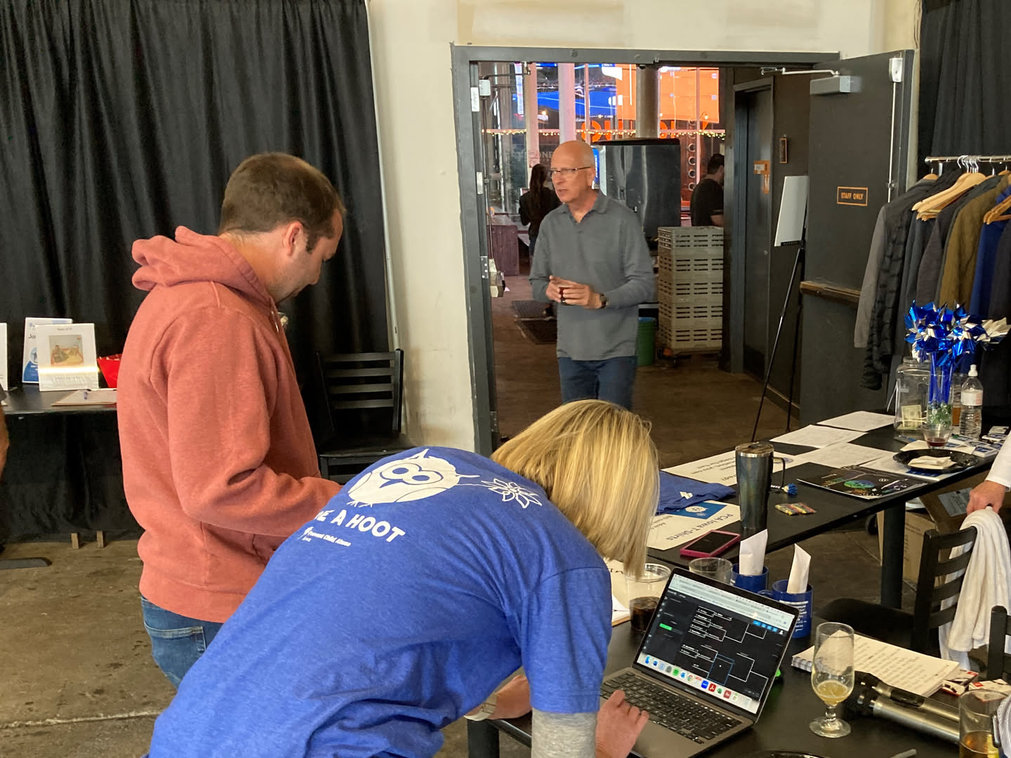 Our official t-shirt for “Wear Blue Day” in 2024 featuring the Owl from our children’s book on the back and the phrase Strong Families Healthy Community on the front. Raygun.